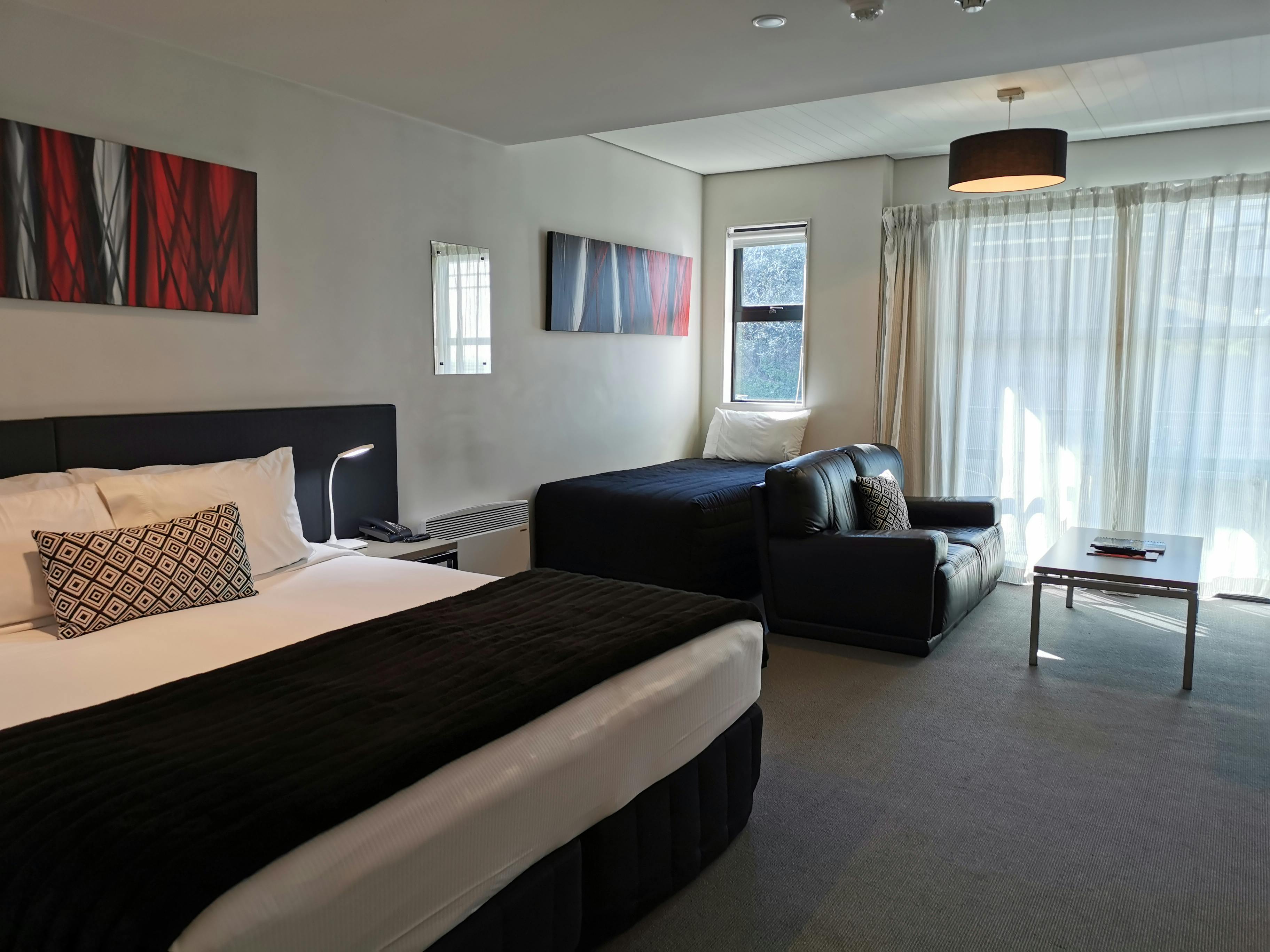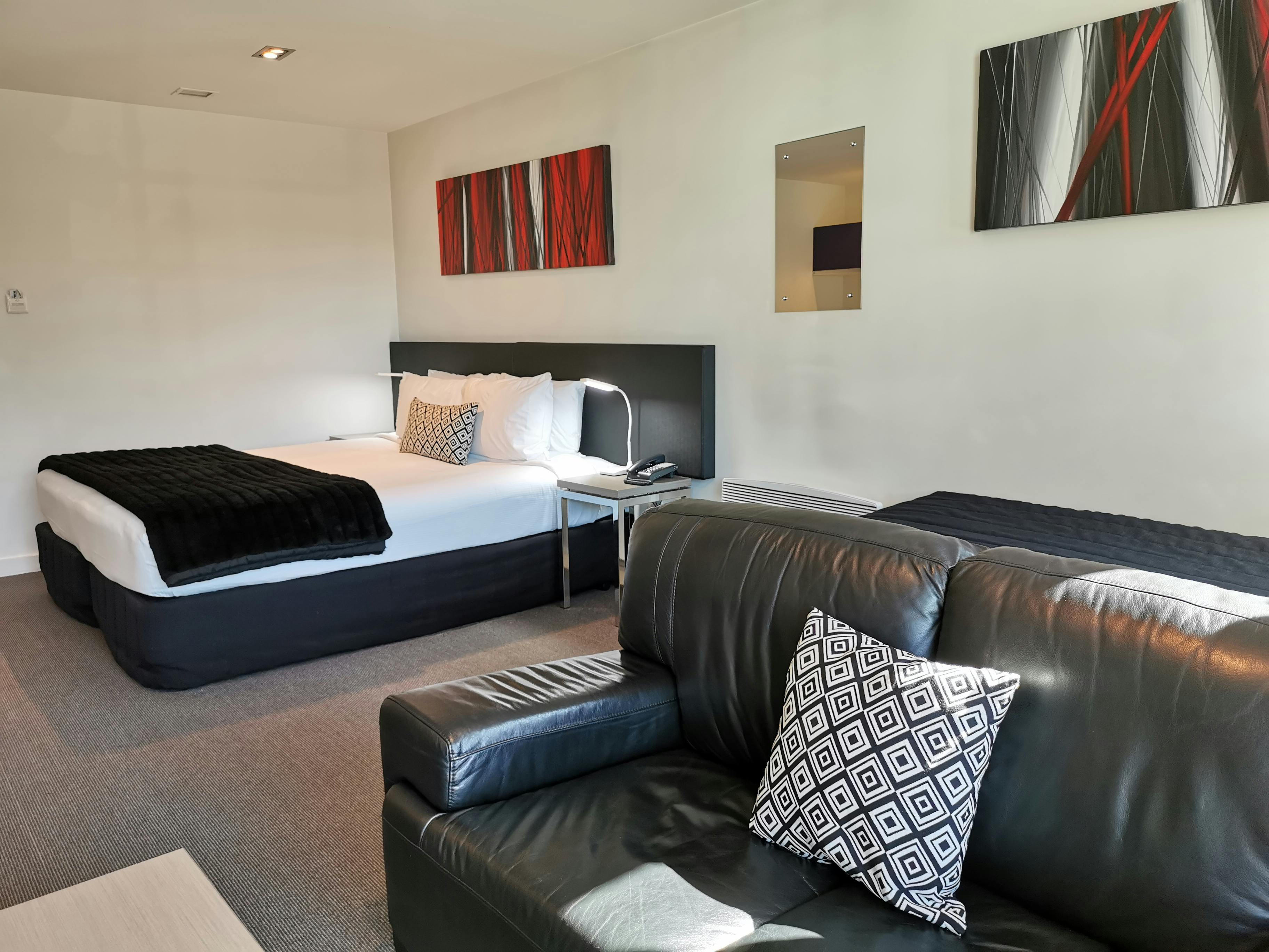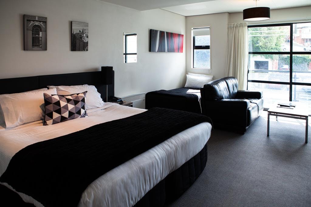 Lift access, modern, light and bright with glass balcony. Perfect for the independent traveler wanting to be in the heart of the city or corporate traveler who works in the CBD. Luxurious Super-king bed + a Single Bedbed; well-appointed bathroom with comfortable shower, plus under-floor heating, heated mirror, and a functional kitchenette.